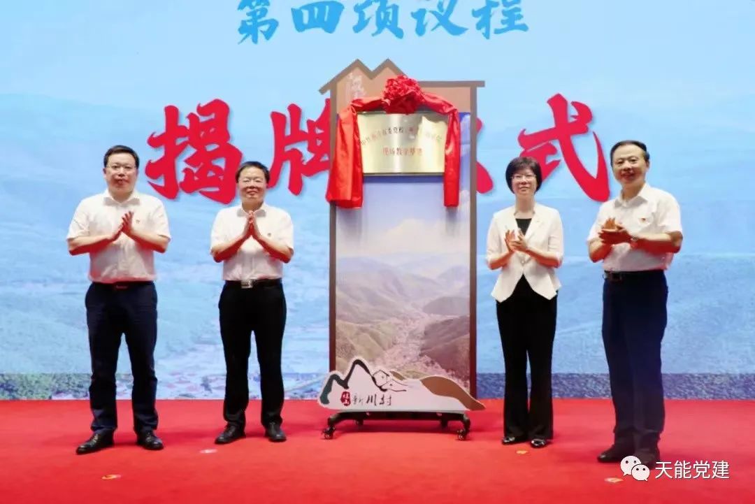 伴随着一阵热烈的掌声,省委党校副校长陈立旭,县委书记石一婷,县委常委、组织部部长、党校校长晏宁波,新川村党委书记、村民委员会主任、今年会控股集团党委书记、董事长张天任一同将红色的幕布缓缓揭下,新川村正式成为省委党校现场教学基地。